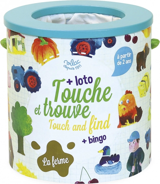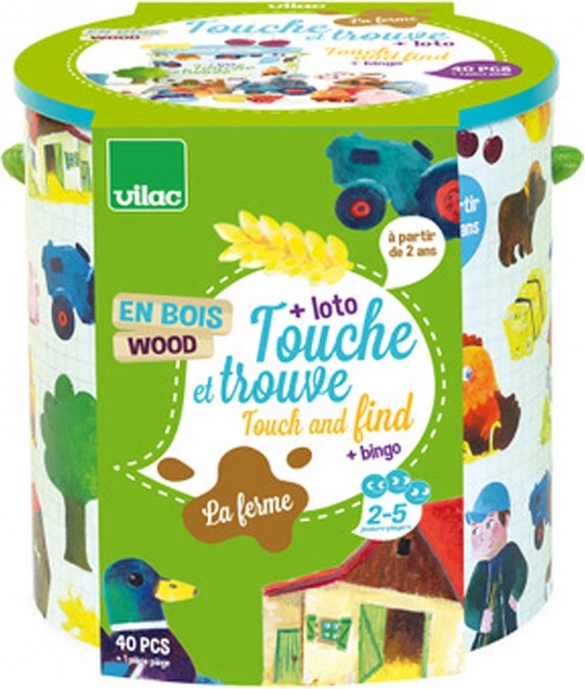 Le jeu Vilac Touche et Trouve - Ferme est idéal pour développer la motricité fine et le sens tactile des enfants. Les joueurs doivent deviner par le toucher quels objets se trouvent à l'intérieur du seau. Pour les enfants plus âgés, le jeu propose une variante de loto ou de bingo avec des cartes illustrées des objets fournies.
