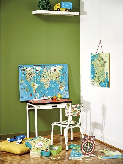 Le coffret comprend un ensemble de cartes modèles pour s’exercer, grâce auxquelles les enfants consolident leurs connaissances et s’entraînent à régler et à lire l’heure. L’horloge peut être simplement posée sur une table ou suspendue au mur dans une chambre d’enfant ou une salle de classe. Sa conception durable en bois de qualité et sa fabrication écologique garantissent une longue durée de vie et une utilisation sûre.