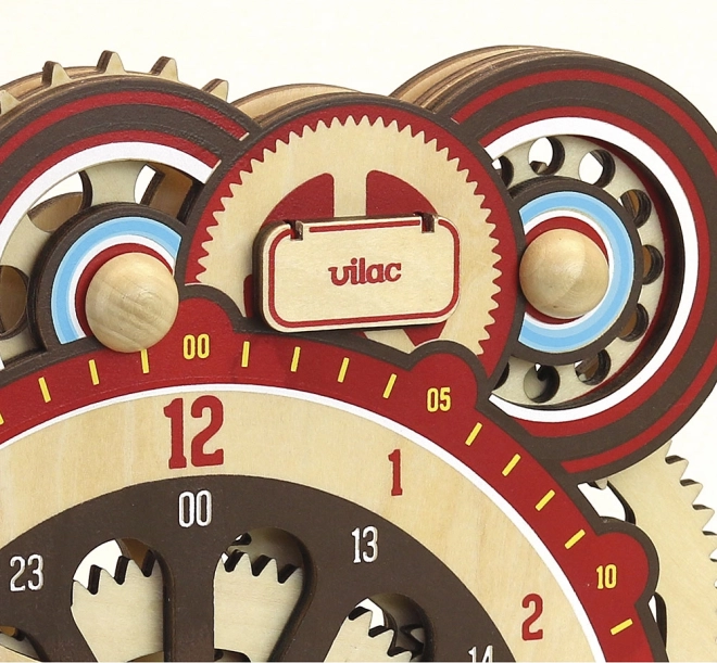 L’horloge didactique en bois VILAC guide les enfants de manière ludique dans l’apprentissage du temps. Le cadran analogique est complété par un disque chiffré qui imite l’affichage numérique et facilite l’orientation. Les deux aiguilles et le disque sont reliés par des engrenages précis, de sorte que la mécanique correspond fidèlement à une vraie horloge – cela aide à mieux comprendre la relation entre minutes et heures.