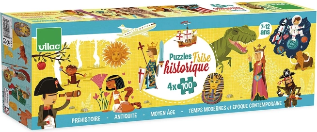 Explorez l’histoire de façon ludique avec une collection de quatre grands puzzles en bois illustrant des événements marquants de la préhistoire à nos jours. Chaque puzzle comporte 100 pièces et, une fois assemblés, forment ensemble une longue frise chronologique. Idéal pour les enfants à partir de 6 ans qui souhaitent apprendre en s’amusant tout en développant leur pensée logique et leur motricité fine.