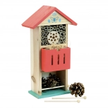 Vilac Hôtel à insectes rouge est conçu pour offrir un habitat aux abeilles, coccinelles et autres insectes bénéfiques, contribuant ainsi à soutenir la biodiversité de votre jardin. La structure comprend des trous tubulaires et un espace pour des matériaux tels que des pommes de pin, créant un environnement idéal pour les insectes.