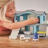 La maison a deux étages, un escalier mobile et est entièrement meublable, ce qui encourage le jeu créatif.