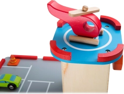 Ce parking en bois de Small Foot offre une expérience de jeu complète pour vos enfants. Le set comprend non seulement un parking avec trois étages, mais aussi un ascenseur qui permet le déplacement des voitures entre les niveaux et un héliport idéal pour tous les petits pilotes.
