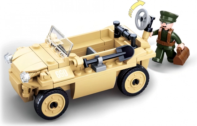 Plongez dans un univers de jeu créatif avec ce kit Sluban détaillé, représentant des répliques de véhicules militaires allemands de la Seconde Guerre mondiale. Le kit comprend 106 pièces et une figurine originale avec des parties pivotantes et articulées, permettant de jouer avec d’autres accessoires.