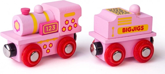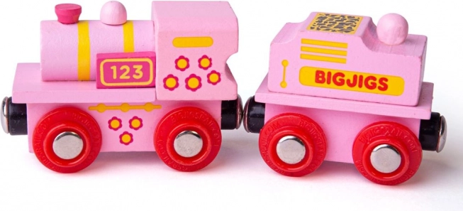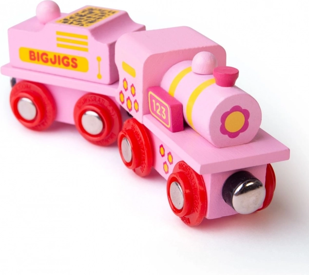 Adorable locomotive rose avec tender de BIGJIGS, idéale comme premier train pour les circuits en bois. Grâce aux attelages magnétiques, vous pouvez facilement raccorder d’autres wagons, compatibles avec la plupart des circuits de trains en bois du marché. Fabriquée en bois de qualité et conforme aux normes de sécurité européennes, elle stimule l’imagination, la motricité fine et la coordination des enfants.