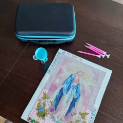 Ce set pratique facilite l’organisation et la création à tout amateur de peinture au diamant. Tout est rangé en sécurité dans un étui rigide et durable avec fermeture éclair, comprenant des flacons bien disposés dans une mousse et une poche filet pour les accessoires. Grâce à cette solution, vous avez toujours tous les strass et outils à portée de main et parfaitement triés.