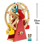 Les enfants peuvent facilement faire tourner la grande roue grâce à une manivelle robuste et observer le mouvement fluide des nacelles – un excellent exercice de coordination et de patience.