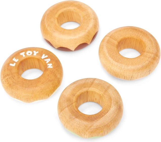Ce set de donuts en bois de Le Toy Van est non seulement esthétiquement agréable, mais surtout sécurisé et fabriqué en bois massif. Chaque donut est délicatement arrondi pour un jeu sans risque et décoré de tons pastels avec différents motifs de vermicelles. Les peintures à base d’eau, utilisées pour les finitions manuelles, sont non toxiques et totalement sûres pour les enfants.