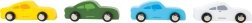 - Set complet – le coffret comprend quatre petites voitures de sport en bois.