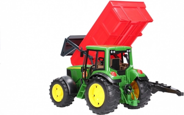 Le set tracteur JOHN DEERE avec benne basculante fonctionnelle offre aux enfants une expérience réaliste des travaux agricoles. Le tracteur est détaillé, avec capot ouvrant, essieu avant directionnel via un volant rallongé en cabine et pneus profilés marqués pour un rendu fidèle et des traces réalistes.