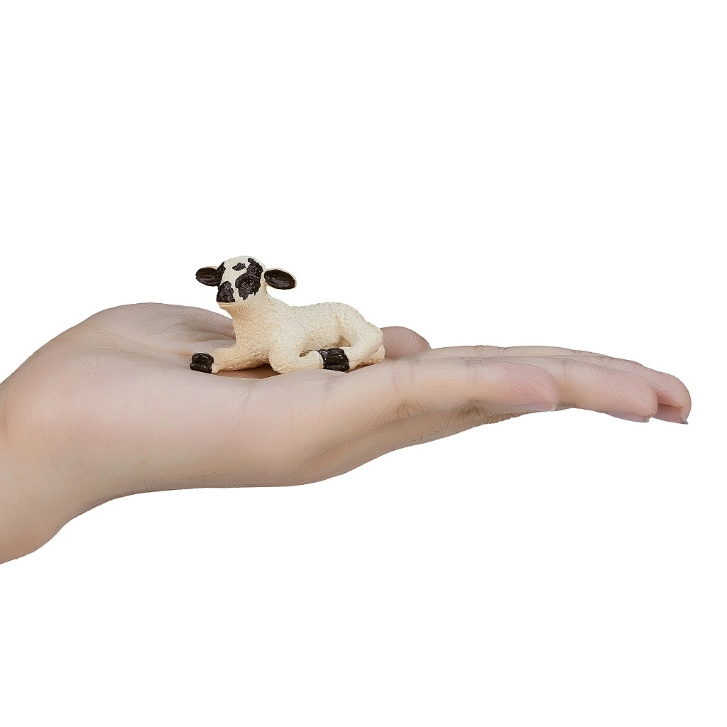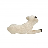 Cette figurine de haute qualité représente fidèlement un agneau de race Hampshire en position couchée. La texture réaliste de la « laine », la coloration contrastée et les détails précis favorisent le développement de l’imagination, le jeu thématique et la découverte des animaux.