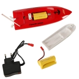 Petit mais vif, ce bateau RC offre une commande intuitive et une navigation stable sur une eau calme. Grâce à sa coque en plastique résistante et à une aérodynamique bien pensée, le modèle est très maniable et adapté aux enfants. L’alimentation est assurée par une batterie Ni‑Cd 3,6 V 500 mAh, offrant environ 7 à 8 minutes de navigation par charge.