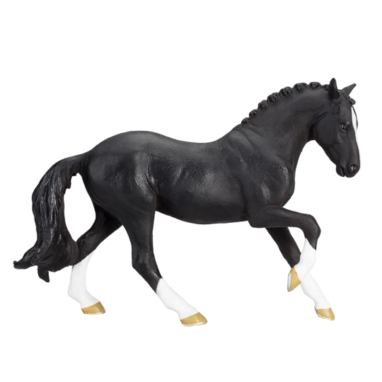 Cette figurine réaliste de cheval hanovrien noir par Mojo offre aux enfants la possibilité de se familiariser avec des *détails authentiques* et une *conception de qualité* de cette race.