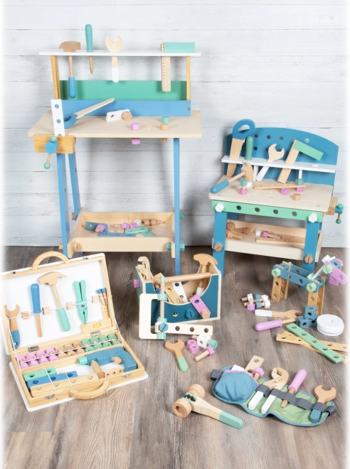 Découvrez le charme du style nordique avec un établi qui combine douces couleurs pastel, bois naturel et fonctionnalité bien pensée. En jouant, les enfants apprennent la dextérité manuelle, développent leur motricité fine et la patience. Grâce à ses dimensions compactes, l’établi trouve sa place dans tout intérieur.