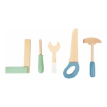 Il comprend 21 pièces : 5 vis, 5 écrous, 3 clous, 5 outils et 3 plaques perforées pour s’entraîner à visser et à marteler. Un étau et une étagère inférieure assurent le rangement sécurisé de tous les accessoires. Un excellent choix pour les garçons et les filles dès 3 ans.