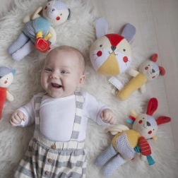 - Utilisation polyvalente comme anneau de dentition, hochet ou peluche à câliner.