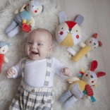 Le petit lapin sert de hochet, d’anneau de dentition et de peluche câline pour les enfants, ce qui en fait un jouet très polyvalent.