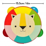 Le graphisme multicolore du lion attire l’attention et stimule le plaisir de jouer ainsi que le développement des sens.