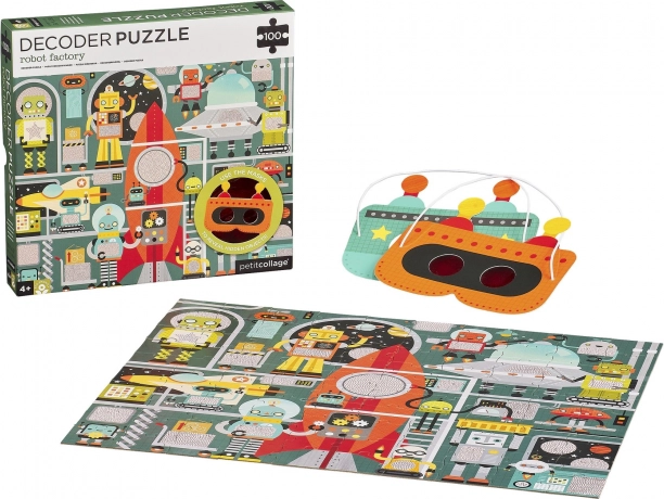 Entrez dans le monde des robots et de leur usine ! Assemblez le puzzle de 100 pièces et, à l’aide du masque décodeur spécial, découvrez les détails cachés nécessaires pour terminer le vaisseau spatial. Cet accessoire ingénieux transforme l’assemblage en un jeu interactif qui développe la logique, l’observation et la motricité fine.