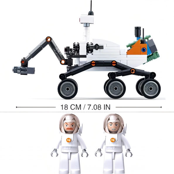 Bras et roues du rover mobiles, figurines positionnables pour une expérience immersive.