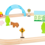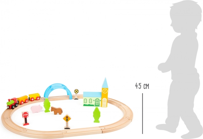 Créez une idylle ferroviaire dans la chambre des enfants. Ce circuit de train en bois de qualité SMALL FOOT se monte rapidement, tient parfaitement et, grâce à ses accessoires bien pensés, offre une infinité d’histoires – de la campagne paisible à la ville animée. Le train traverse un pont bleu, passe devant des arbres, des animaux et des panneaux de signalisation, et stimule l’imagination à chaque trajet.
