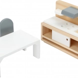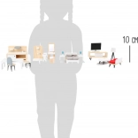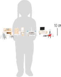Le set de meubles SMALL FOOT, stylé et intemporel, transforme chaque maison de poupée en un foyer chaleureux. L’association du bois naturel et du blanc offre un rendu épuré et moderne, tandis que des détails comme des coussins, des petites lampes ou un miroir apportent du réalisme au jeu. Les pièces, adaptées aux petites mains, se distinguent par leur solidité et leur durabilité.