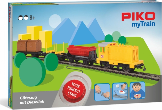 Ce coffret de départ PIKO myTrain apporte tout le nécessaire pour commencer rapidement : une locomotive diesel DB, trois wagons de marchandises, un ovale de base R2 et un contrôleur analogique avec alimentation. Grâce à l’échelle H0 (1:87), l’ensemble est pleinement compatible avec d’autres composants et voies H0 de différents fabricants.