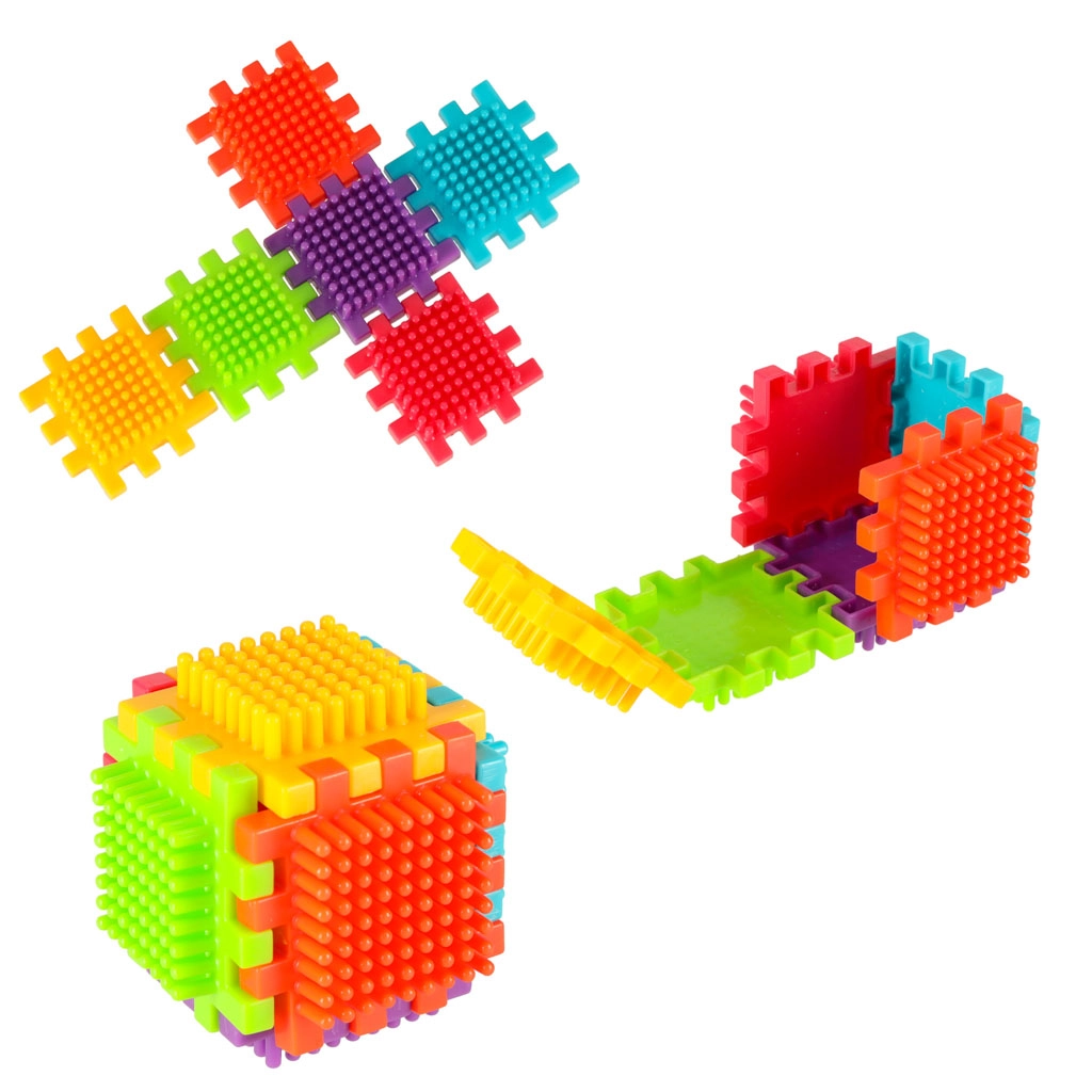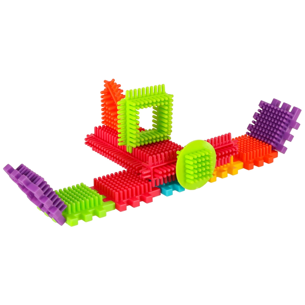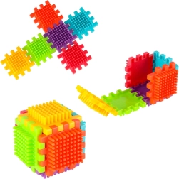 Les blocs sont fabriqués en plastique de haute qualité, ils sont très légers, flexibles et en même temps super résistants. Ils aident à apprendre de nouvelles formes et couleurs et développent les compétences manuelles. Les blocs sont conçus pour stimuler les sens en développement de l’enfant : la vue grâce à des couleurs vives et le toucher grâce à leur forme originale et à leur mode d’assemblage. Des blocs qui offrent d’incroyables possibilités de jeu créatif ! En plus des combinaisons traditionnelles comme avec des blocs ordinaires, ces blocs peuvent également être connectés sur toute la surface d’un côté, ce qui offre une possibilité de création supplémentaire. Ils peuvent être utilisés pour construire des bâtiments, des robots et d’autres structures !
