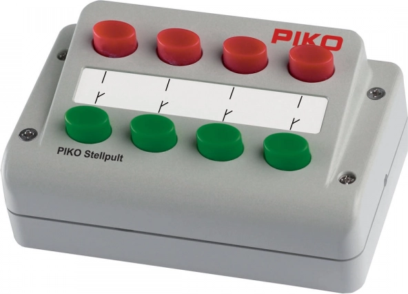 Le panneau de commande analogique de Piko permet un pilotage simple et efficace des feux et des aiguillages de votre réseau miniature. Il est équipé de quatre interrupteurs à double bouton qui vous permettent de gérer clairement différentes sorties, des feux aux aiguillages.