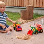 Soulevez, chargez et déplacez les matériaux comme sur un vrai chantier. Le godet à commande mécanique est facile à utiliser et amuse les enfants pendant des heures.