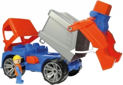 Le camion est fabriqué en plastique élastique de haute qualité conforme à toutes les normes européennes, garantissant durabilité et résistance du jouet. Équipé d'une cabine de conducteur détaillée, elle aussi relevable, et inclut une figurine pour plus d'options de jeu.