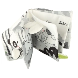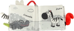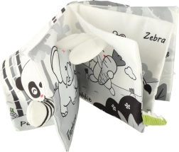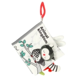 Avec ce livre souple aux couleurs contrastées, votre tout-petit partira à la découverte du monde des animaux — de la chouette au petit singe et au panda, jusqu’au raton laveur, à l’éléphant, au crocodile ou au zèbre. Les éléments noirs, blancs et rouges favorisent la stimulation visuelle précoce, tandis que les différentes textures et les éléments interactifs développent la motricité fine et la coordination œil–main. Chaque page comporte les noms d’animaux en anglais, ce qui soutient naturellement les premiers acquis de vocabulaire.