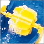 Les enfants peuvent verser de l'eau et créer des courants qui mettent les bateaux en mouvement.