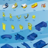 Comprend des barrages, une roue à eau, un port et des pompes pour des jeux d'eau variés.
