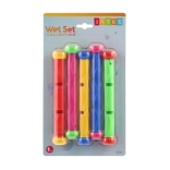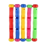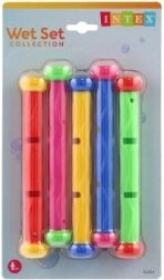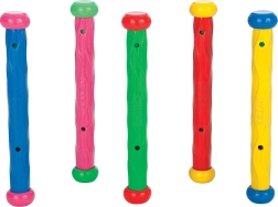 Le set comprend 5 bâtons résistants de 30 cm de long, avec un corps en caoutchouc et des embouts en plastique. Idéal en piscine pour les enfants à partir de 6 ans – pour s'entraîner à la plongée, à l'apnée et gagner en aisance dans l'eau.