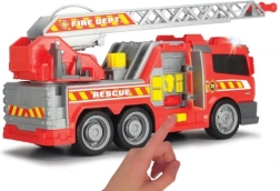 Le camion de pompiers est doté de six roues mobiles, grâce auxquelles il se déplace en douceur sur les surfaces planes. Il comprend une échelle mobile et extensible avec canon à eau, permettant de simuler des interventions de sauvetage. Sur le côté du véhicule se trouve un bouton qui ouvre un compartiment avec l’équipement indispensable pour les pompiers.