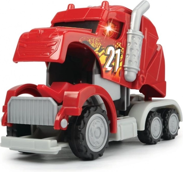 La cabine du tracteur se transforme en dragon en un instant, tracteur à rétrofriction, avec effet sonore et lumière clignotante. 3 modèles – rouge, bleu ou vert. Taille : 12,5 cm.