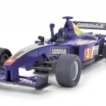 Amusante voiture de course formule à l’échelle 1:32, longueur 14 cm, qui démarre vivement vers l’avant après avoir été tirée par une cordelette. Offre un contrôle facile, des roues avant réglables pour une meilleure trajectoire et 3 couleurs attrayantes – bleu, rouge et argent.