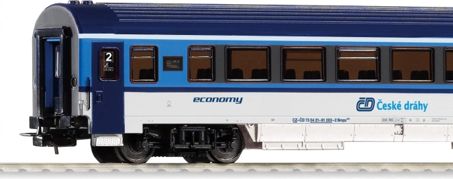 Voiture voyageurs Bmpz 2e classe à quatre essieux, finement détaillée, dans la livrée actuelle RAILJET ČD pour l’échelle H0. Elle offre des marquages précis, des détails réalistes et un fonctionnement fiable grâce à la cinématique d’attelage court selon NEM 362. Idéale pour composer une rame Railjet homogène avec une marche fluide même dans des rayons plus réduits.