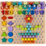 Le set comprend des modèles recto-verso, des chiffres, des symboles mathématiques, ainsi que des anneaux et des billes colorés pour construire des motifs. Grâce à sa base en bois, le jouet est résistant et stable, ses couleurs vives stimulent la créativité et l’enfant acquiert facilement les bases des mathématiques.