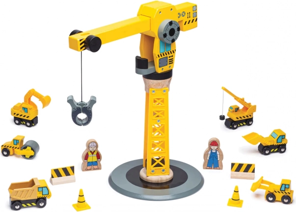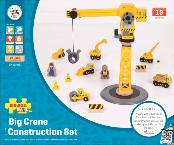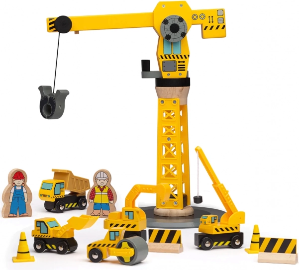 Ce kit de construction en bois de qualité, doté d’une grue pivotante et d’un crochet magnétique, offre aux enfants d’innombrables possibilités de jeu. Grâce à sa conception robuste et à des matériaux sûrs, il est idéal pour un usage quotidien et le développement des compétences. La couleur jaune vive des véhicules de chantier attire immédiatement l’attention des enfants.
