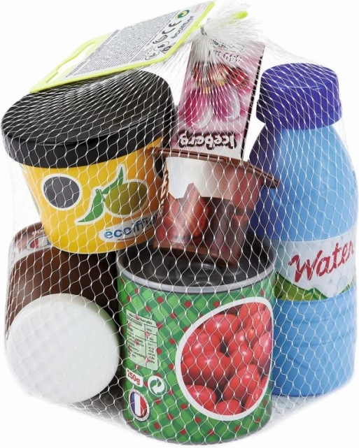 Découvrez l'ensemble d'aliments en filet, qui comprend 8 répliques différentes d'aliments - idéal comme équipement pour le magasin ou la cuisine d'enfant.