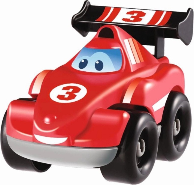 Trois modèles de voitures de course avec carrosserie interchangeable. Chaque modèle de voiture de course avec un visage amusant est sans bords tranchants et tient facilement en main. Idéal pour les petites mains des enfants. Dimensions du produit (L x l x H) : 10 x 6,5 x 6,5 cm.