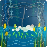 Chaque couche illustre une phase différente – de l’œuf, au têtard, jusqu’au prince grenouille. Les enfants consolident de manière ludique leurs connaissances de la nature tout en s’exerçant à assembler selon les formes et les images.