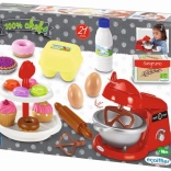 Découvrez le monde créatif de la pâtisserie avec cet ensemble pour enfants, comprenant un robot de cuisine à fonction mécanique, 2 fouets/embouts mélangeurs, un bol mélangeur et un présentoir à pâtisseries. Sont inclus des œufs, un rouleau à pâtisserie et une sélection de desserts comme des macarons, des tartelettes, des muffins et des beignets. Au total, 21 accessoires pour des heures de jeu et de développement de l’imagination.