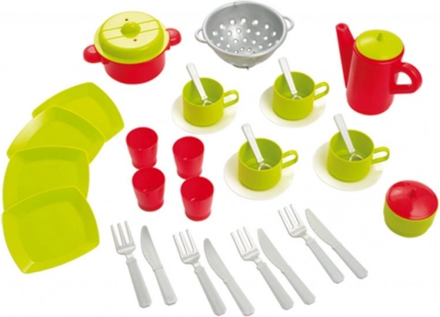 Ensemble de service à thé et de vaisselle pour enfants, pratique et ludique, idéal pour le jeu et le développement des compétences. Le set comprend un équipement complet dont votre enfant a besoin pour son propre petit festin.