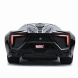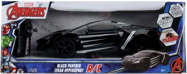 Profitez d’une conduite dynamique avec la voiture RC Lykan HyperSport au design Black Panther. La carrosserie sportive noire avec détails argentés et logos MARVEL attire l’œil au premier regard, tandis que la commande stable à 2,4 GHz assure des manœuvres fluides sans interférences.