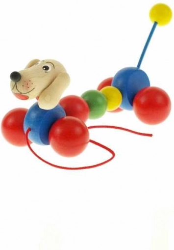 Chien en bois joyeux qui remue la queue en se déplaçant, il ravira les enfants de tous âges. Il est fabriqué en bois de qualité et arbore un design coloré.