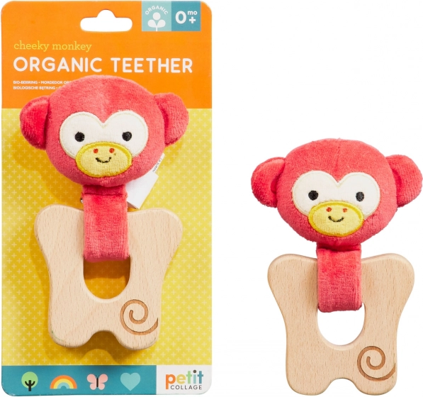 L’anneau de dentition avec la tête d’un joyeux petit singe apporte réconfort et divertissement. La partie textile en coton biologique est agréable au toucher, l’anneau en bois de hêtre certifié FSC est lisse et durable. Sa forme ergonomique favorise le développement de la motricité fine et une prise sûre.