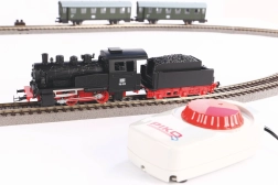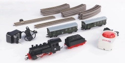 - Ensemble complet – locomotive BR 98 avec tender, 2 × voiture voyageurs, voies, alimentation et contrôleur.